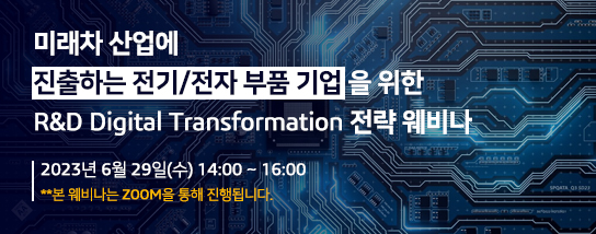 0 [종료] 미래차 산업에 진출하는 전기/전자 부품 기업을 위한 R&D 디지털 트랜스포메이션 전략 웨비나 (6/29, 목, 오후2시) 2023년 6월 16일 by MARCOM · Published 2023년 6월 16일 · Last modified 2023년 7월 12일
